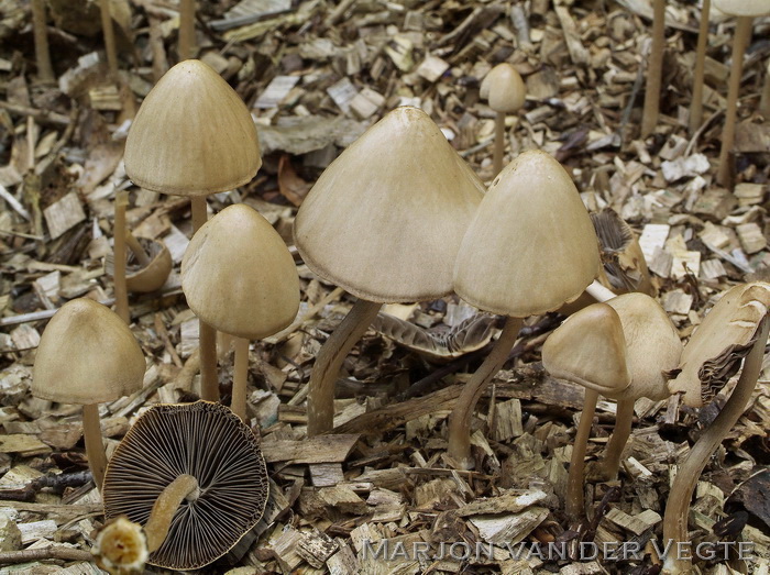 In bossen, parken, tuinen op voedselrijke bodems, tussen strooisel of op takjes, maar het meest op houtsnippers; vaak in grote groepen.