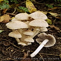 Hier jonge exemplaren waarbij het velum op de hoed nog aanwezig is.