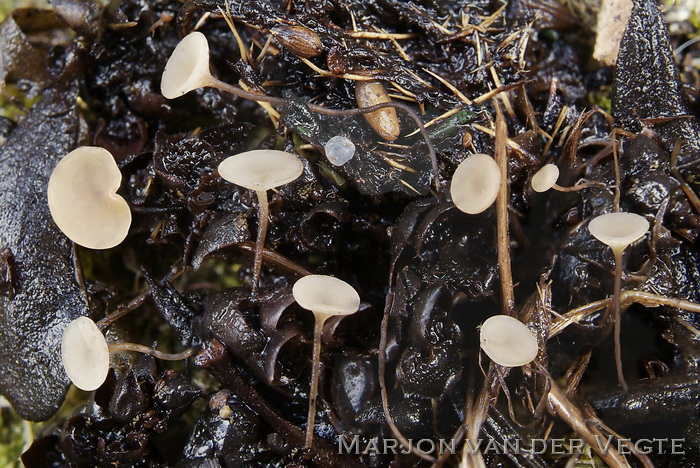 Saprotoof op afgevallen, overjarige, mannelijke katjes van de Wilde gagel (Myrica gale) in gagelstruwelen in laagveenmoerassen en langs vennen.