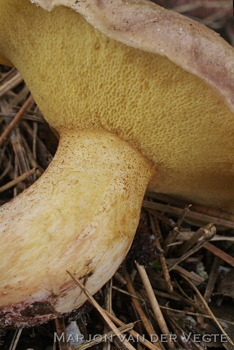 Mycorrhiza vormend met Grove en Zwarte den, éénmaal bij Beuk, in vrij jonge naaldbossen, zelden loofbos, op droge, kalkhoudende, basische zandgrond.