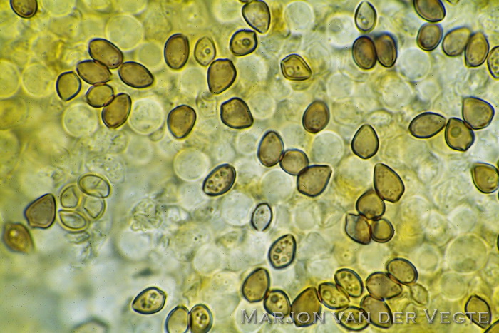 Saprotroof, in groepen op houtresten en ander plantaardig afval in hunusrijk zand.